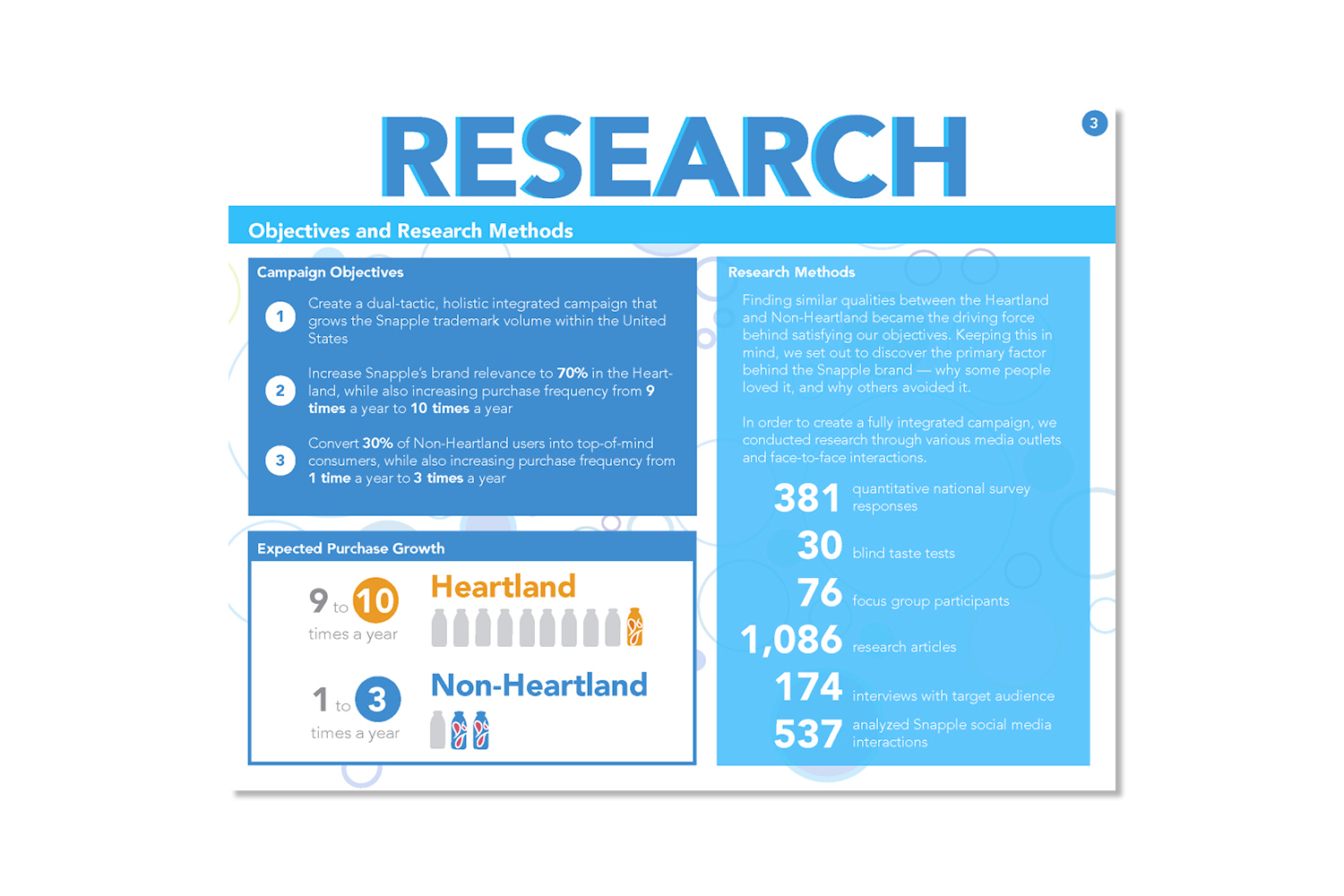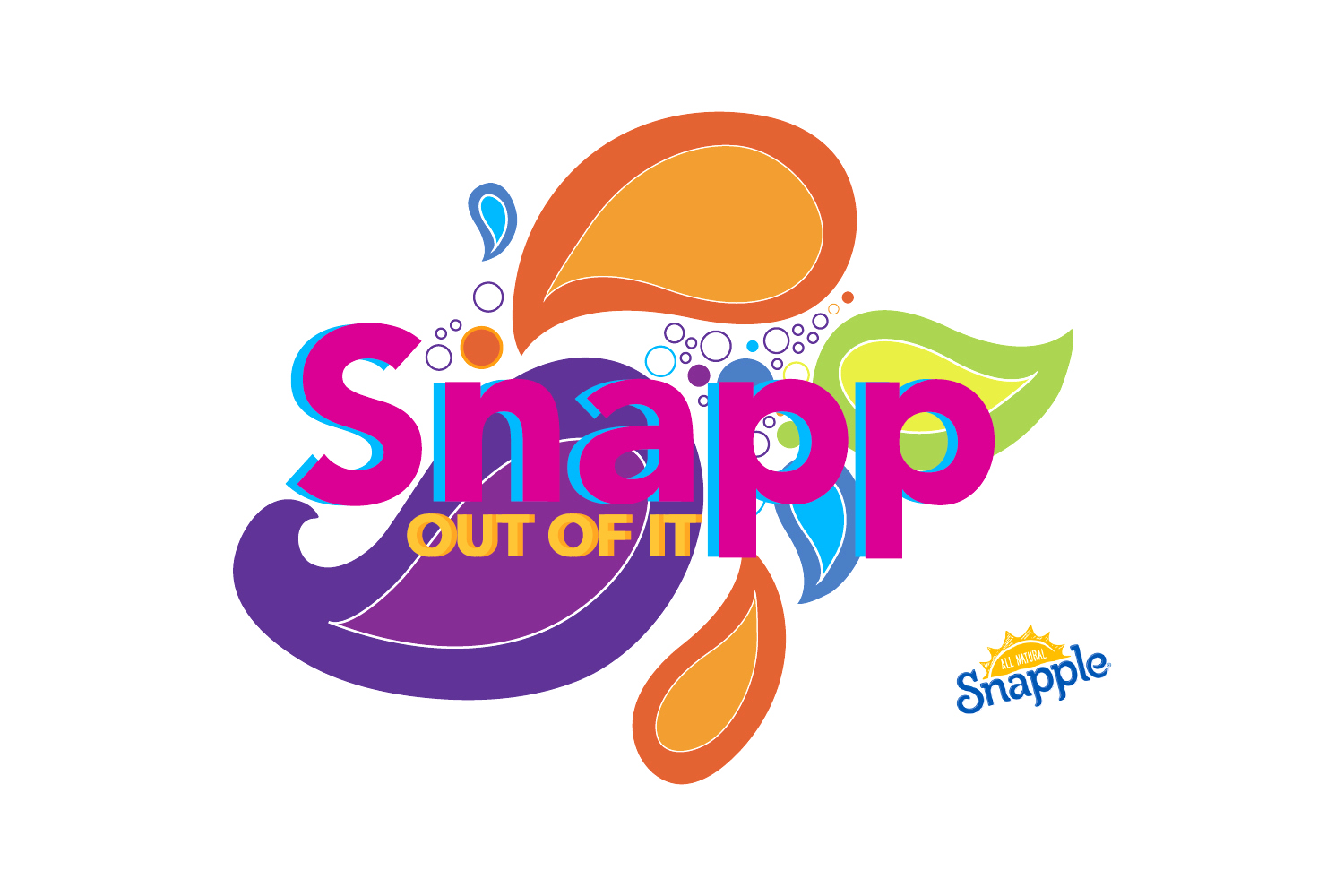 The Snapp out of it campaign is an initiative to entice loyal consumers to drink more and encourage others to try Snapple products. This campaign is focused on bringing zest and happiness to an otherwise boring day, or in other words to "Snapp out of it". In terms of design, I wanted to communicate the "zest and happiness" felt after drinking Snapple. This was accomplished by using bright colors and organic patterns. Overall this campaign was a success, winning "best plansbook", "best presenter", and third place overall at an NAAF regional competition.