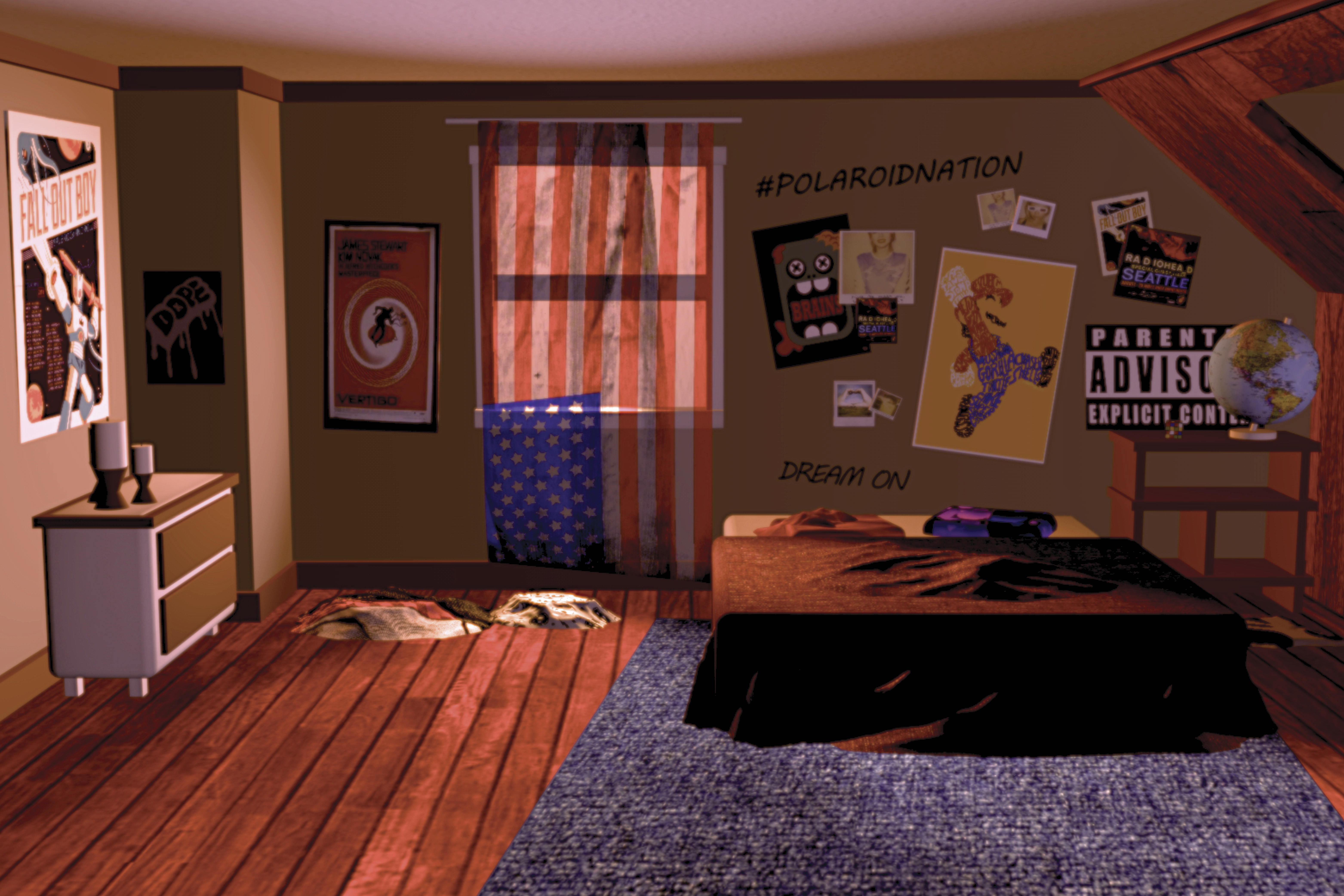 This 3D modeling project is a rendering of a scene from the popular video game "life is strange". For reference I have included both the actual scene and my own rendering.