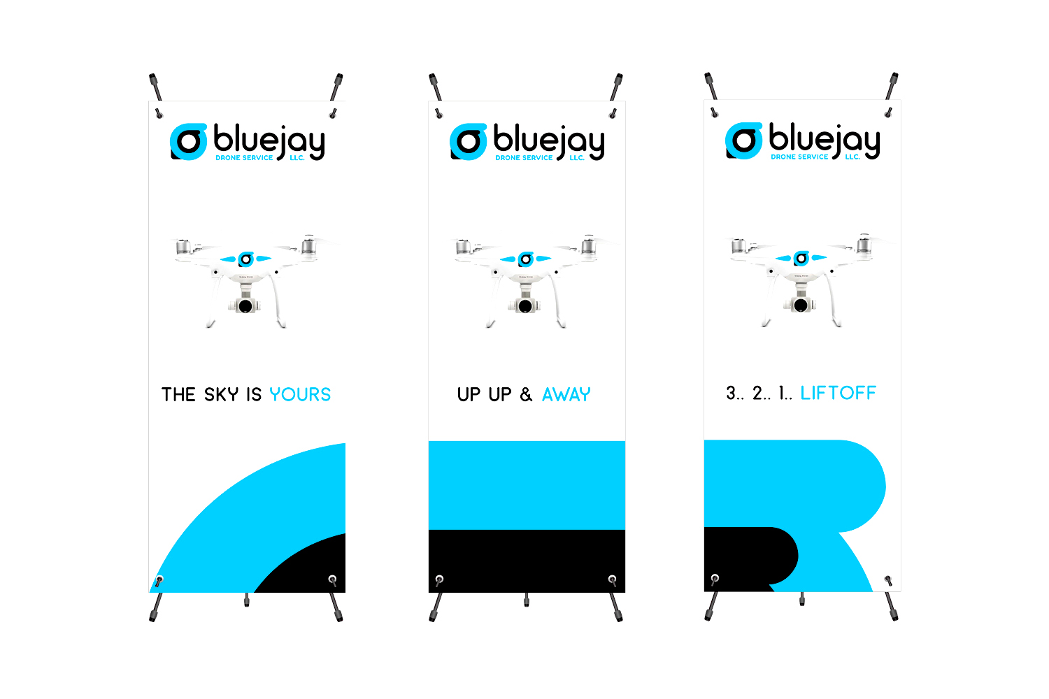 Bluejay drones is a drone service and repair company. The logo is a combination of the letter "a" from the word "bluejay". This creates a more consistent feel and connection between the logo and the company's name. Because the logo and company name are visually similar the two can be used interchangeably without loosing brand recognition.