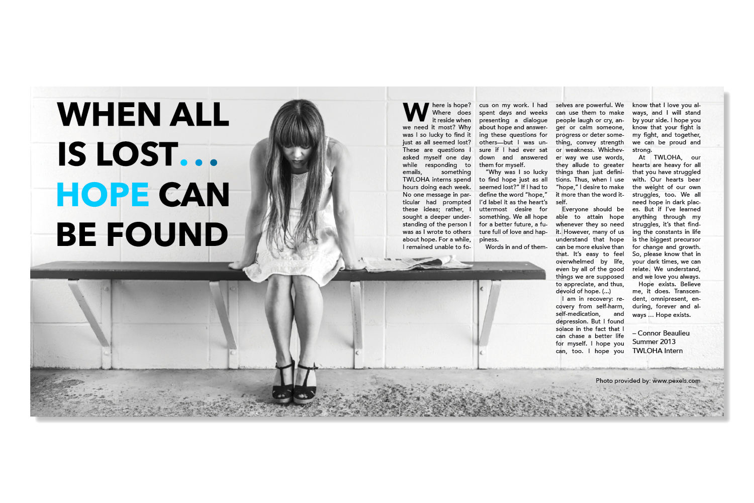 To Write Love On Her Arms is a non-profit organization based around the idea that everyone is valuable and deserves respect despite their affliction, addiction, or mental health. The purpose of this rebrand was to add sustenance to a somewhat transparent and blunt design.