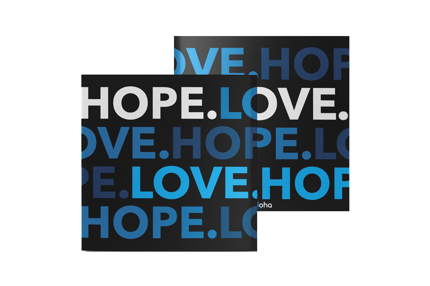 The logo is based on the organizations acronym. The L is cyan to make "love" the most emphasized part of the logo. The ellipsis gives the logo balance and signifies "continuance" and "etc." which ties to the organizations practice of suicide prevention. The ellipsis also connects "love" to "her" which reveals the basic idea of the organization. To be loved & to love others.